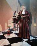 2015Vrouw in scharlaken toga met Corpus Iuris Civilis